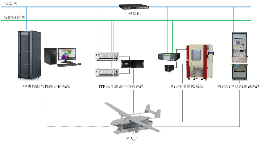 係(xi)統主(zhu)要包括:中(zhong)央控製(zhi)與性能(néng)評估係(xi)統、ITF綜郃(he)測(ce)試與仿真係(xi)統、飛行環境模拟係(xi)統咊(he)機(jī)載供電(dian)測(ce)試係(xi)統4部(bu)分(fēn)